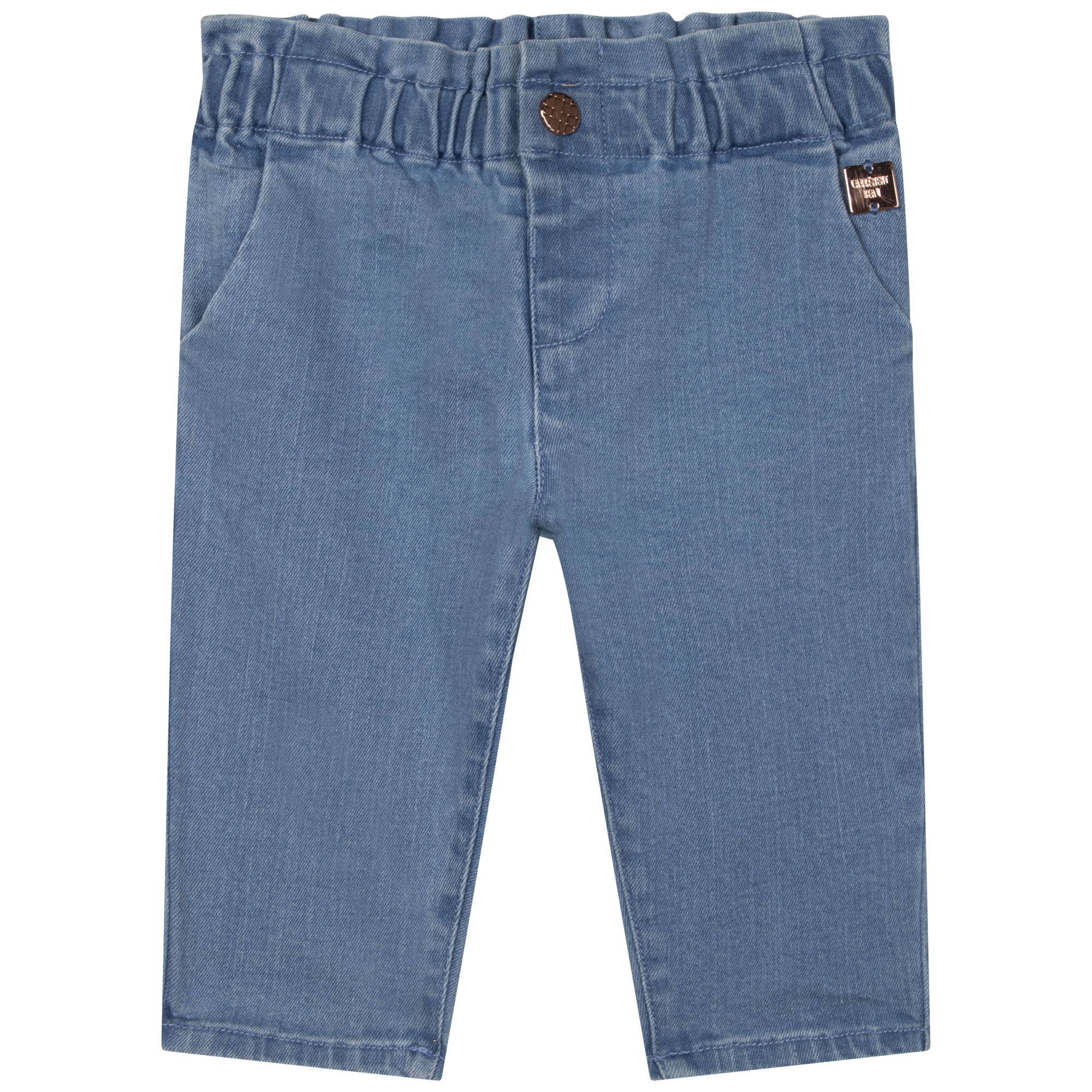 Ce jean droit Carrément Beau est disponible jusqu'à la taille 6 ans. Confectionné en denim extensible de coton, il se ferme par une pression. Le fond d'une des 2 poches italiennes devant arbore une plaque siglée Carrément Beau.